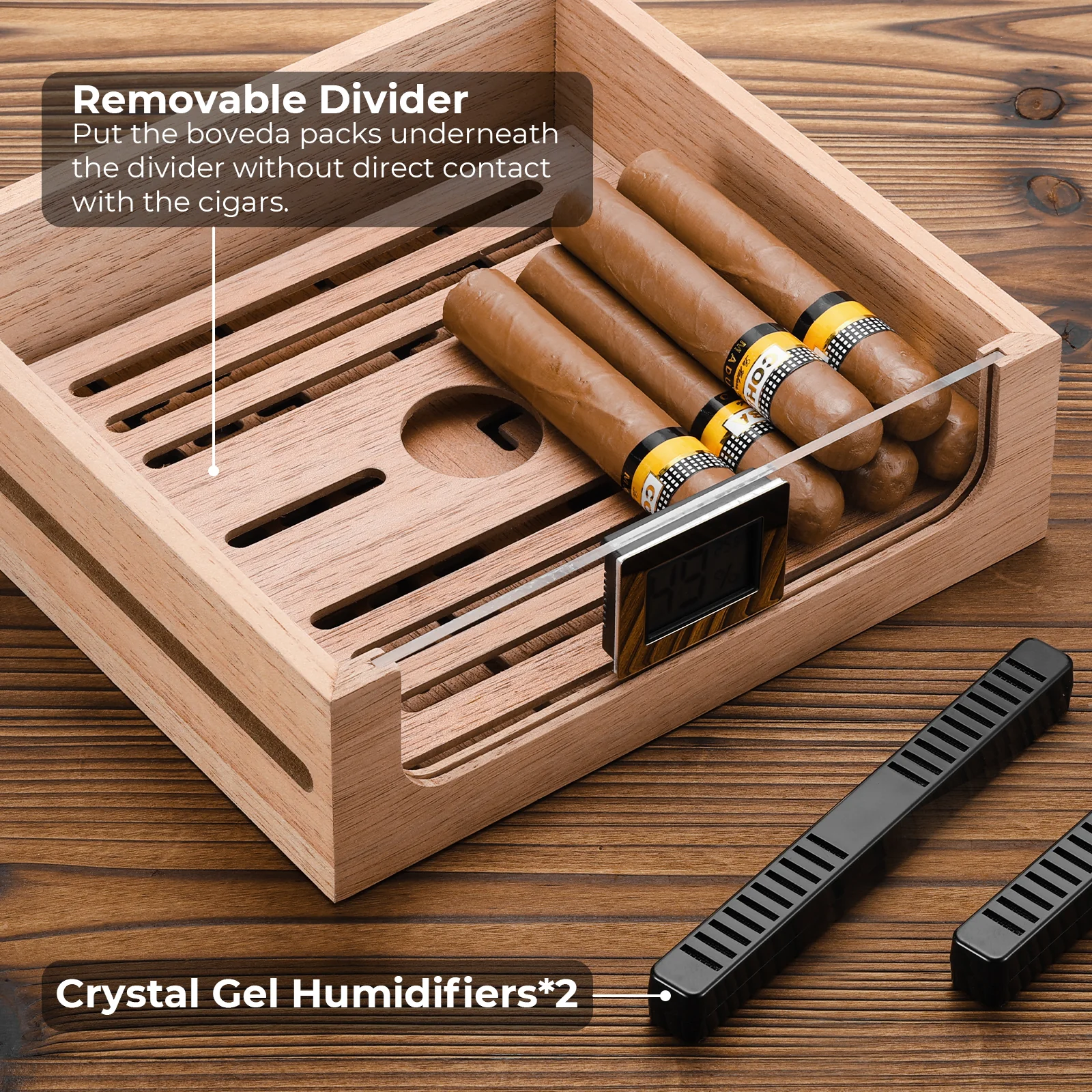 - ăTight SealingăThe magnetic sealing door maintains a stable humidity for the cigars. And the spanish cedar lining keeps the cigars fresh and fragrant. Also the unique airflow design at the bottom of the drawer gives the cigars a better breathable environment.